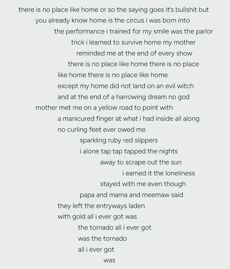 | ena ganguly (she/they) is a soft-spirited Bengali femme, born in Bihar and raised in Texas. Their work focuses on collective memory, grief, surveillance, and sensuality and has been featured in Palette Poetry, BBC, Buzzfeed, KUT Austin Radio, The Austin Chronicle, COURIER Newsroom, exhibited in Austin, TX at Prizer Arts and Letters and allgo, and won Breakwater Review’s 2024 Peseroff Poetry Prize. |