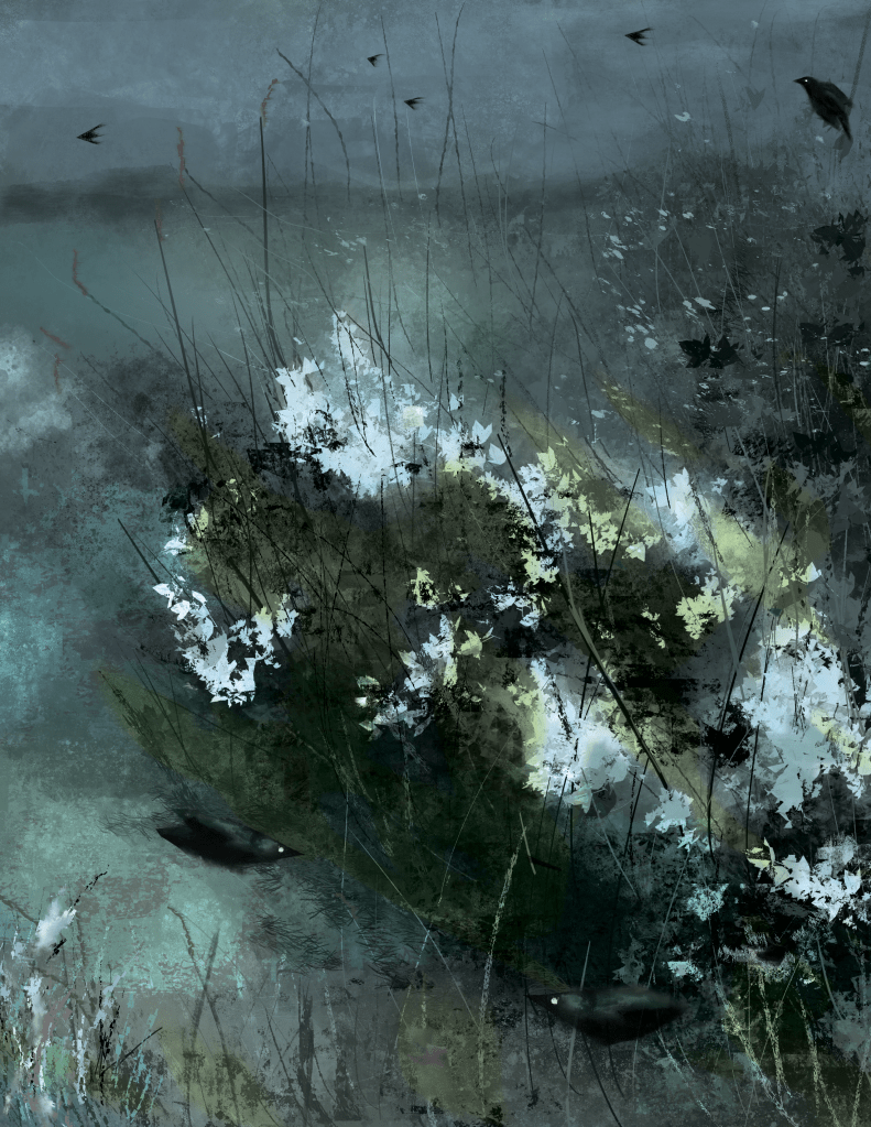 | M.I. Lumsden (she/her) is a multimedia artist and illustrator who currently lives and works on Cape Cod, MA. Her studio practice ranges widely in media and genre and she enjoys the process of discovery and freedom that this brings. She is inspired by the eerie beauty of nature and stories hidden in shadows. Her art reflects calm melancholy and uneasy dreaminess that all at once can seem emotional and yet withdrawn. When she is not in her studio she is out with her dog, Nimbo, walking around taking way too many reference photos. |